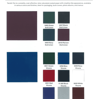 Introducing Tanalin Ten, a versatile coated paper that’s latex saturated, ideal for a myriad of applications including packaging, book covers, photo albums, and menus. Available in an extensive array of colors and finishes, you can opt for solid hues or explore special finishes like Zebu (marble look) and Dull (matte finishes).